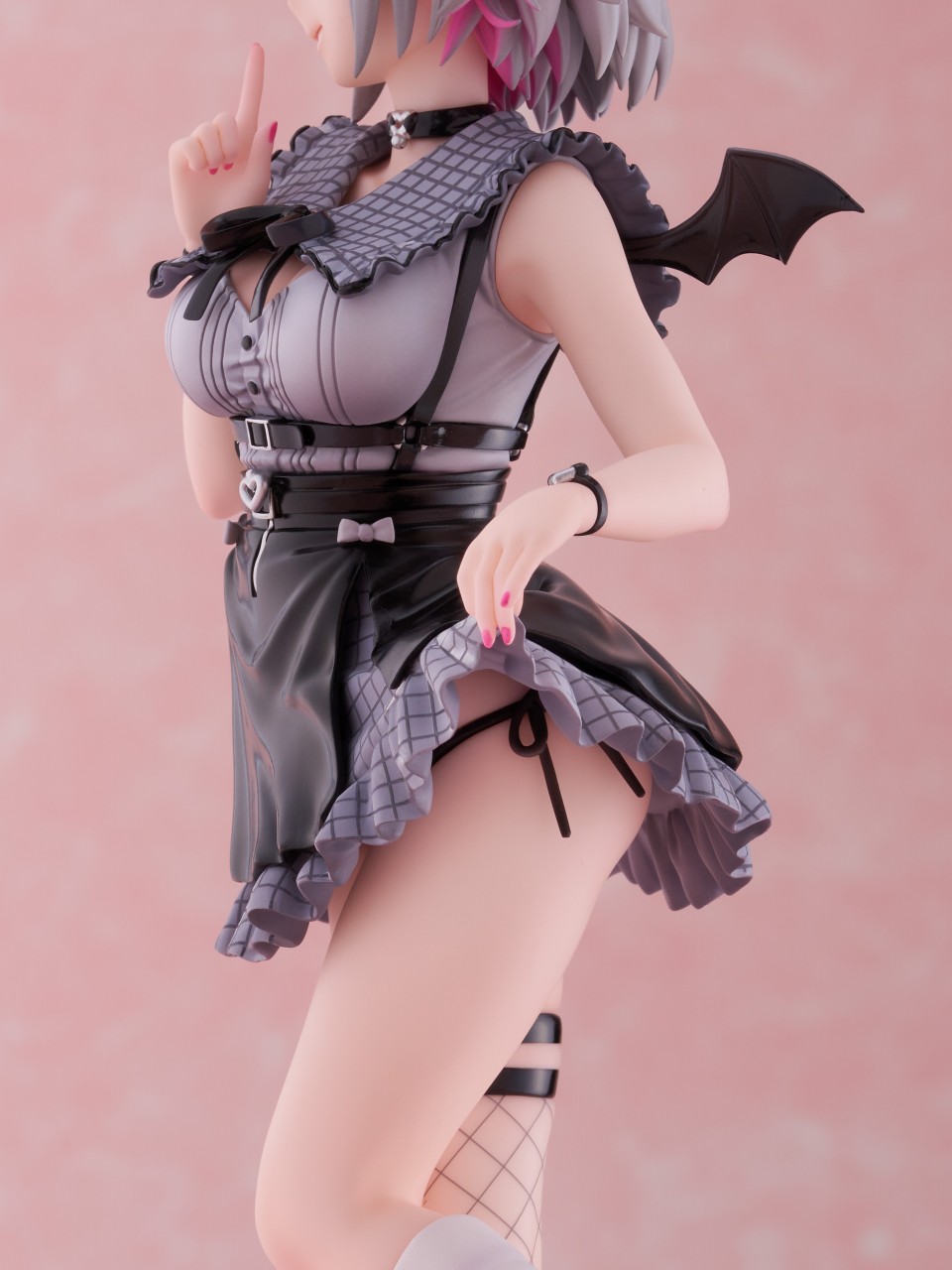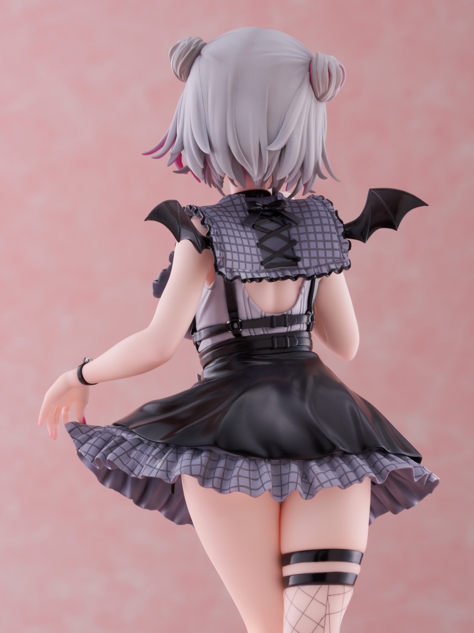 今回『F:NEX』では、イラストレーター・しぐれうい氏デザインの地雷系衣装を身にまとった『F:NEX』オリジナルの挑発的なポーズをフィギュア化しました。2つに結んだ髪は髪飾りやピンクのインナーカラーも可愛く忠実に細部まで再現。また、普段の配信では見られない背面からのアングルでは、衣装からのぞく背中や、持ち上げたスカートからちらりとうかがえる黒い紐など、セクシーさにもこだわり作りこみました。さらに、周防パトラ本人のサインが印字されたピンクの台座もポイントです。加えて、ASMR配信時をイメージした“耳かきを持った手”の差し替えパーツをご用意。ファンの方にとってはたまらない逸品です。まるで画面から飛び出てきたかのように忠実に再現された、かわいくてセクシーな周防パトラがお手元でご堪能いただけます。