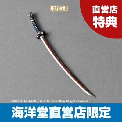 背中に背負った鞘から抜刀することのできる破魔の刀「龍剣」をはじめ、「鎖鎌」「手裏剣」「硬殻猛禽爪」といったゲーム中で使用する武器が豊富に付属。