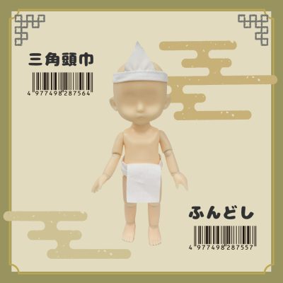 【デフォルメフィギュア用に】ドール服「浴衣」「袴」「下駄&足袋」「笠・三度笠」「三角頭巾」「ふんどし」100円ショップで発売中