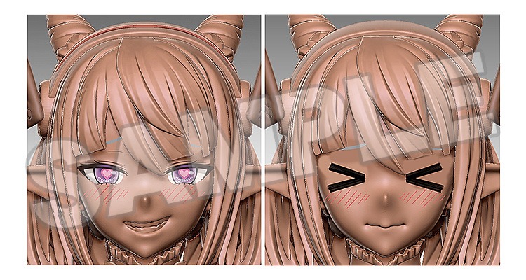 ・塗装済み表情パーツとして「微笑み顔」「にやけ顔」「半泣き顔」「目閉じ顔」をご用意。
