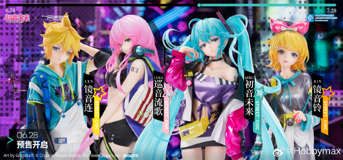 ホビーマックス「初音ミク」「巡音ルカ」「鏡音リン」「鏡音レン」トレンディストリートver. スケールフィギュア 彩色原型公開、近日予約開始