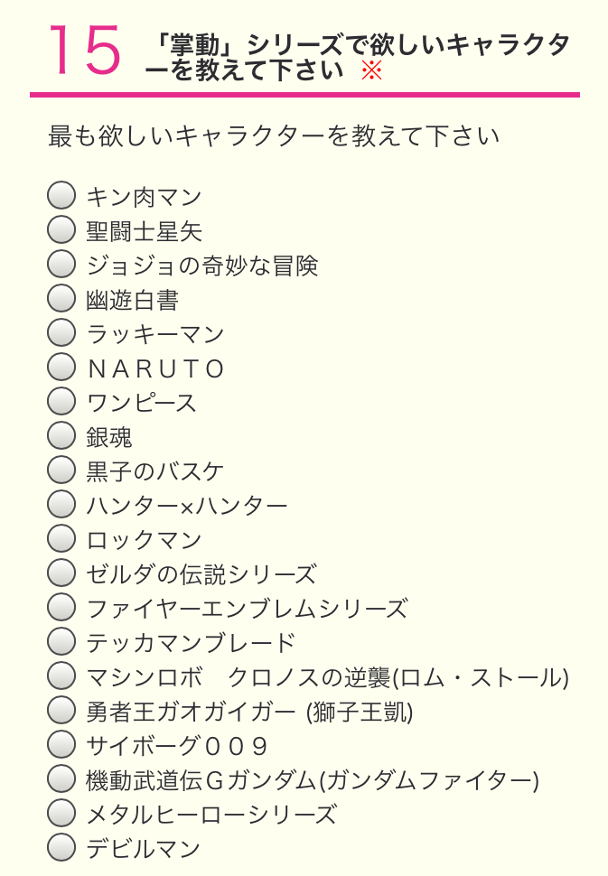 食玩アクションフィギュア「掌動シリーズ」商品化アンケート受付中