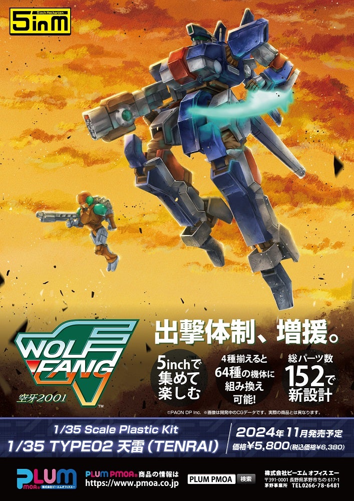 【ウルフファング空牙2001】5inM「TYPE02 天雷(TENRAI)」プラモデル 8月8日予約開始
