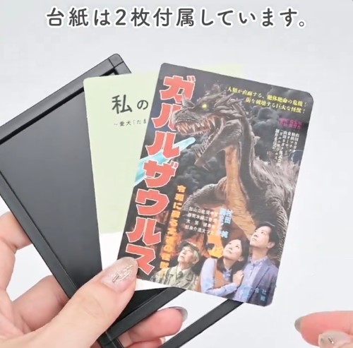 映画ポスター風デザインの台紙が2枚付属します(うち一枚は台紙から切り離して使用します)