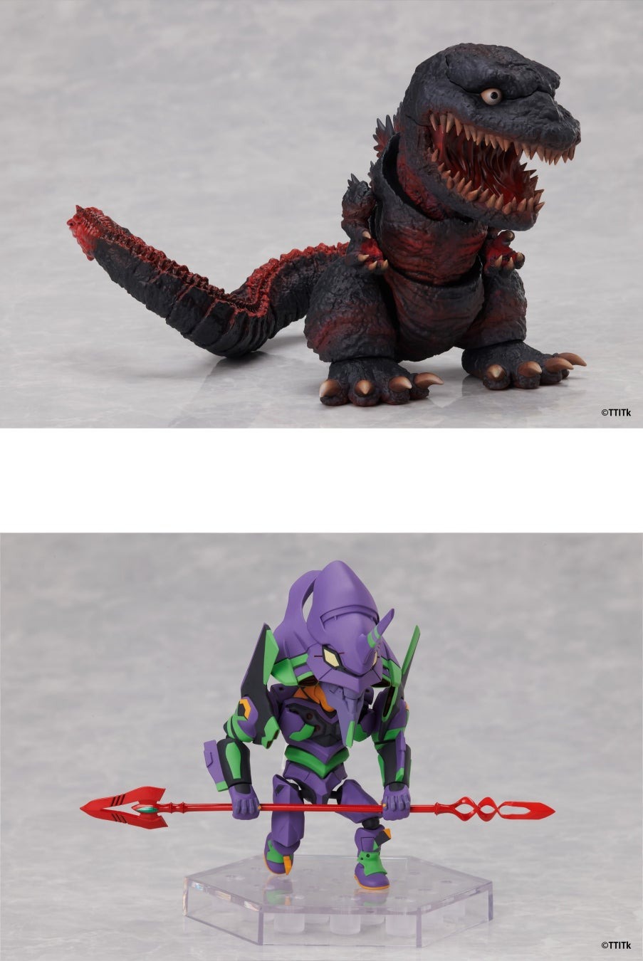 「ゴジラ(2016) フルアクション」「エヴァンゲリオン初号機」「ウルトラマン(シン・ウルトラマン)」「仮面ライダー(シン・仮面ライダー)」フルアクションデフォルメフィギュア