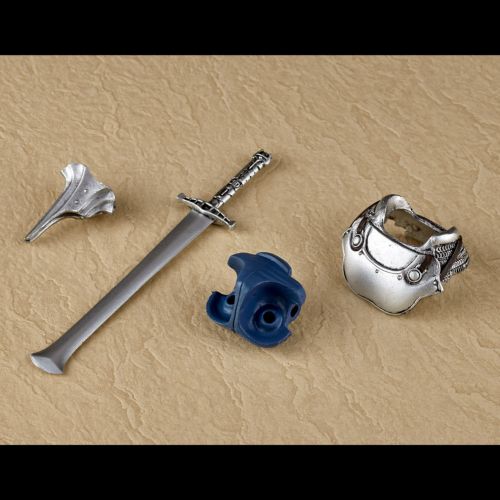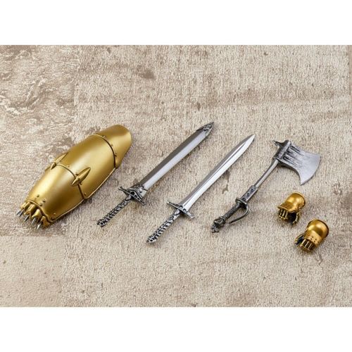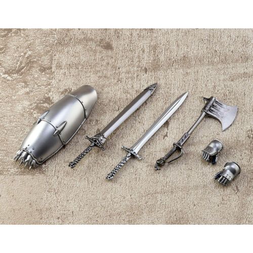 脇に刺した大剣に加え、戦闘用の斧、大型の盾が付属し、アニメーション、原作で見せたさまざまな戦闘シーンを再現することができる。