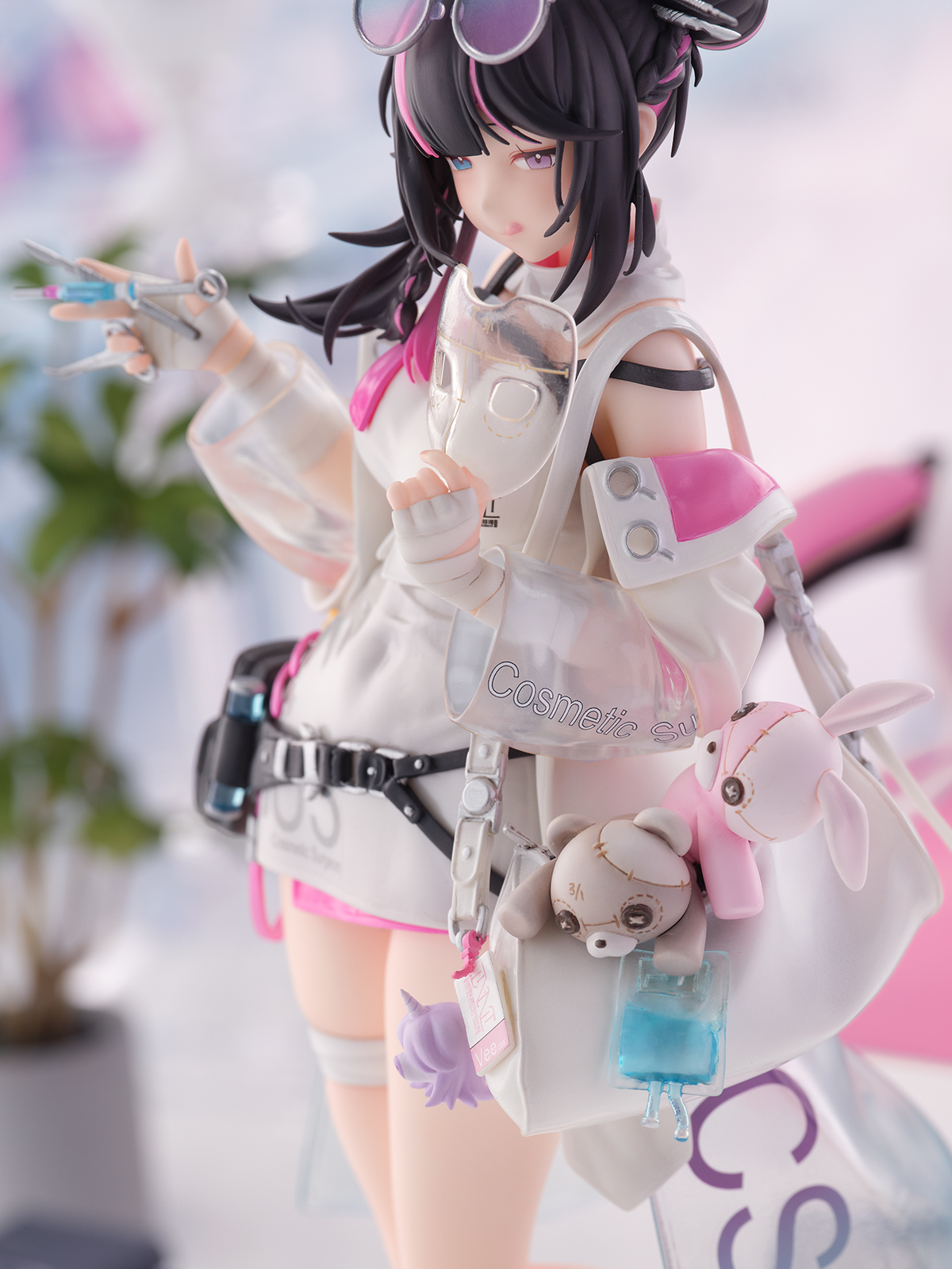 衣装の一部にはクリアパーツを使用し、腰に巻いたベルトや肩にかけたバッグの中身など、