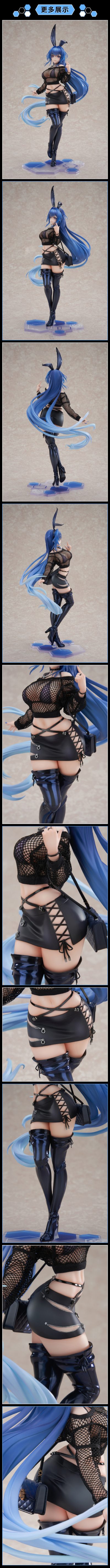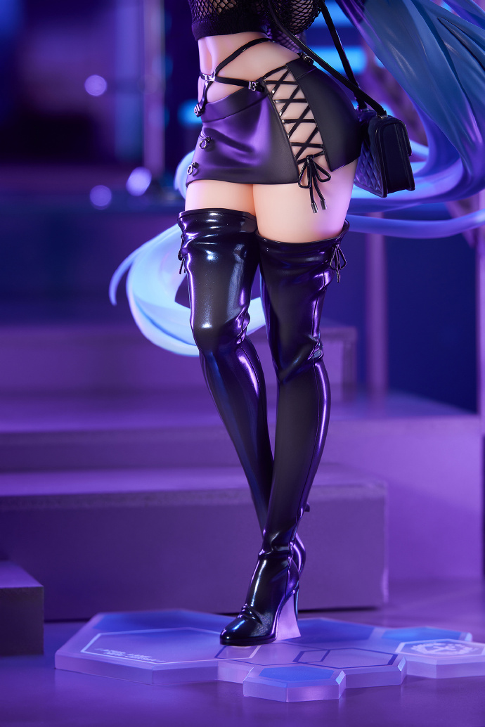 クールながらもセクシーな装いでの立体化となっており、目を惹くトップスは質感を重視して布製素材を用いて再現。塗装表現にもこだわっており、個性的なウサミミ、フェミニンかつオシャレなショルダーバッグとニーハイブーツはパール塗装を施し、ミニスカートはマットな仕上がりとすること素材の違いを表現しました。