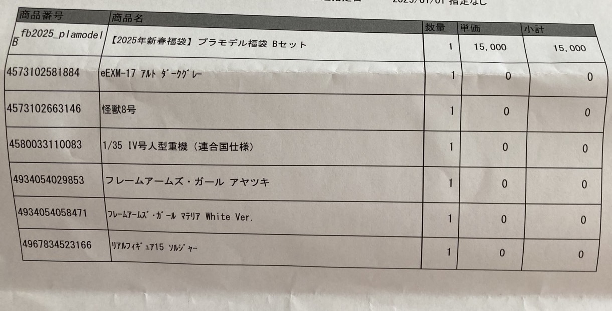 「プラモデル福袋 Bセット」の開封記事です