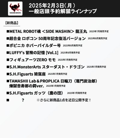 ロボ魂は3月の魂ストアガンダムエキシビジョンで新作の発表待ちだと思う。