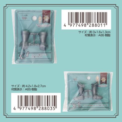 【ミニチュア】ダンジョンシリーズ「ドール用籠手」「ドール用足鎧」100円ショップで発売中