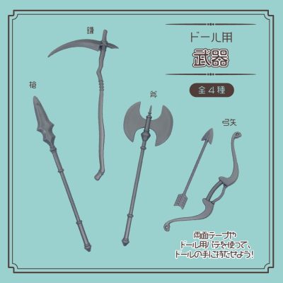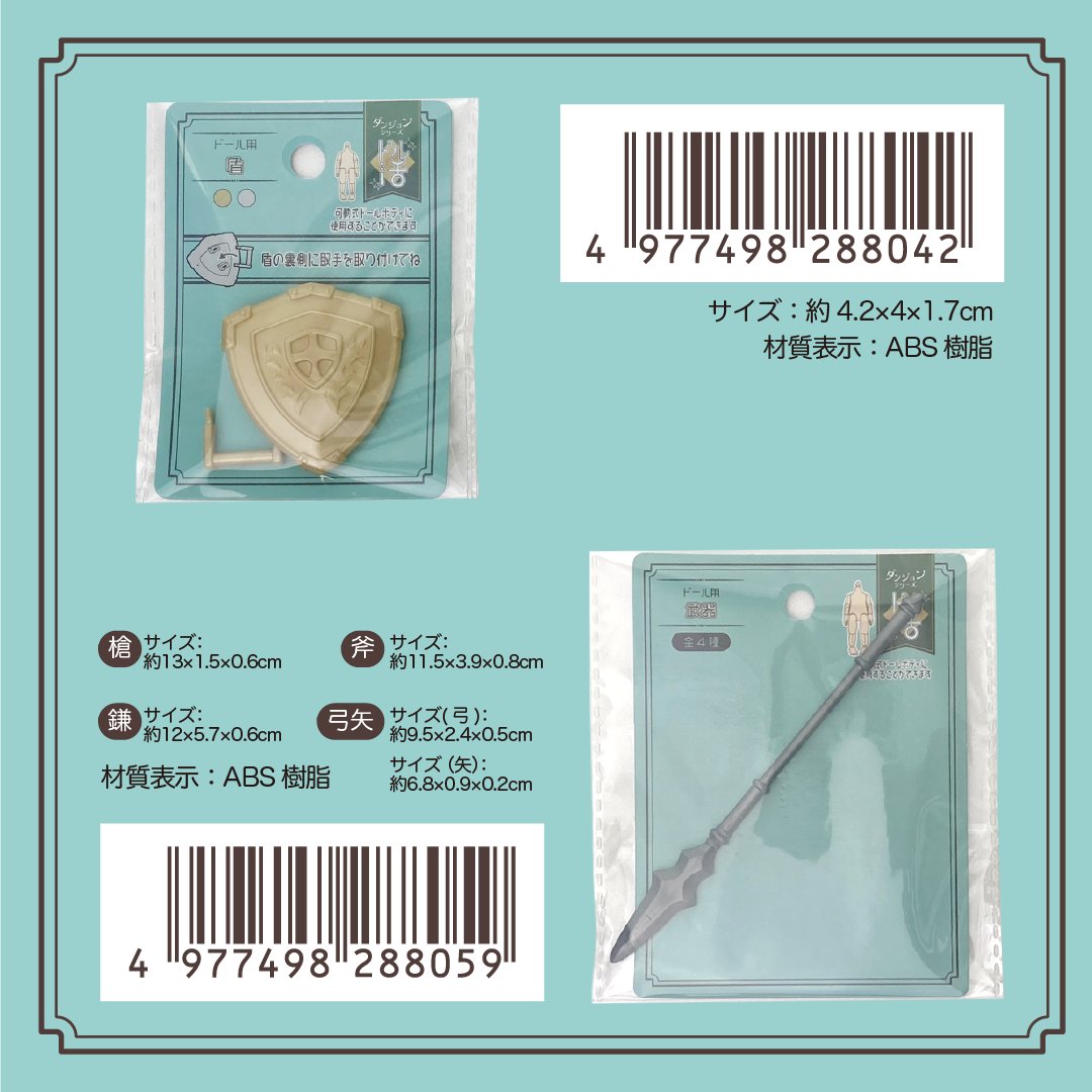 【可動フィギュア用に】ダンジョンシリーズ「ドール用盾」「ドール用武器」100円ショップで発売中