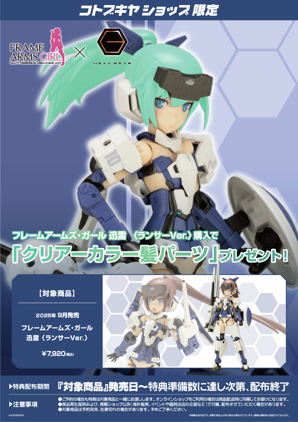 『フレームアームズ・ガール』、『ヘキサギア』とのコンピレーションキット「フレームアームズ・ガール 迅雷 〈ランサーVer.〉」!