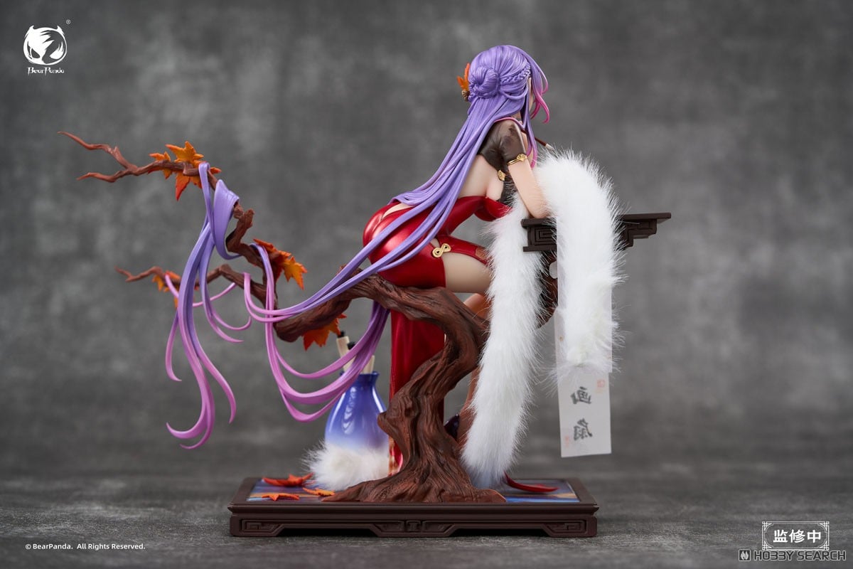フィギュアは、繊細な造形で古典的な詞の情景を表現。一面の紅衣が優美なシルエットを引き立て、薄絹の扇が紙の上を舞う蛍を隠す。伏し目がちの視線に秘めた想い、筆を取るも言葉にはならず、ただ静かに情が流れる。
