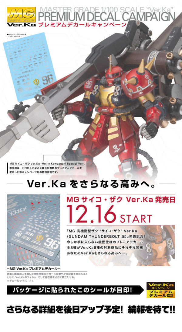 TOP > ロボット > ガンダム > 【ガンプラ】「MG Ver.ka プレミアムデカールキャンペーン」12月16日開催決定