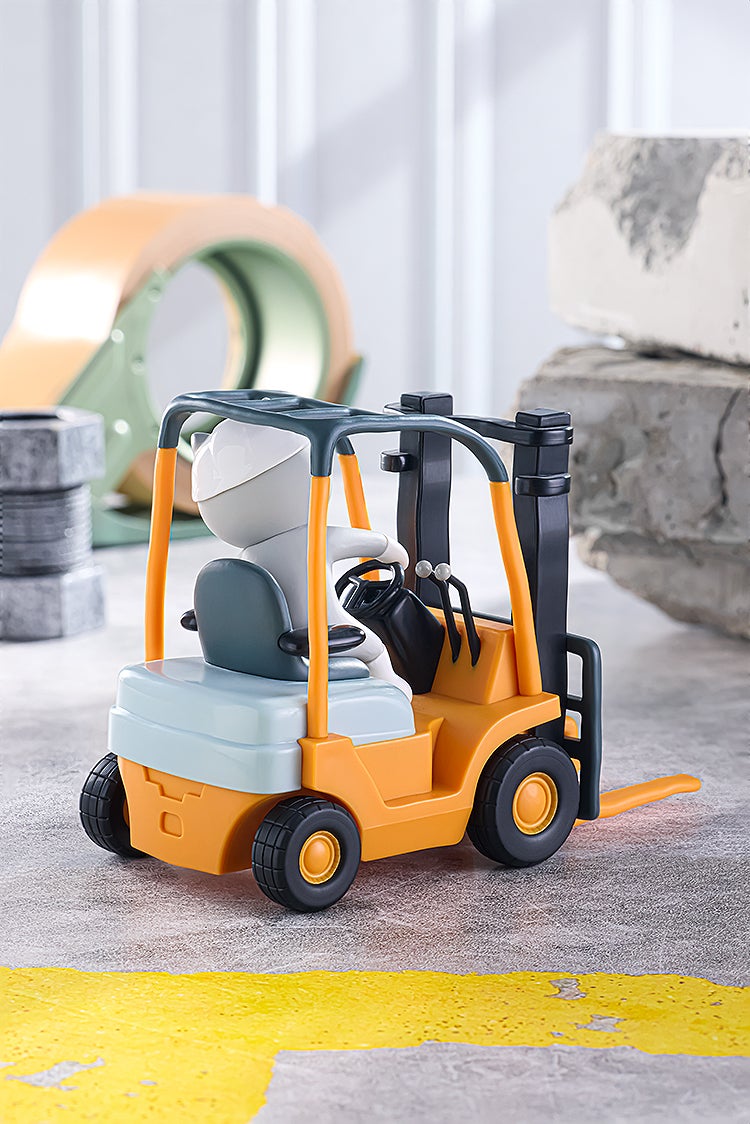 「POP UP PARADE」は、思わず手にとってしまうお手頃価格、全高17~18cmの飾りやすいサイズ、スピーディにお届けなど、フィギュアファンにやさしいカタチを追求したフィギュアシリーズです。くまみね先生の描き下ろしイラストを元にしたフォークリフトに乗った仕事猫が、後ろに引いて手を離すと走り出します。ヨシ!