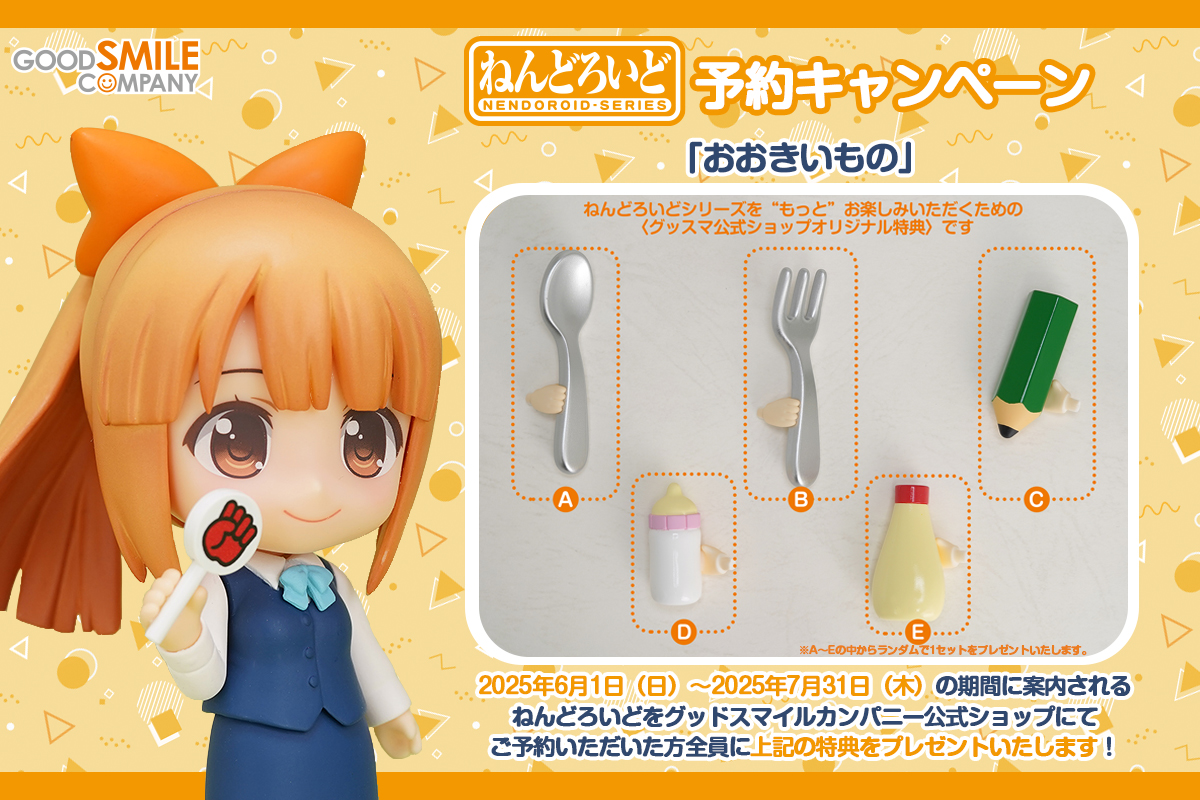 2025年6月1日(日)~ 2025年7月31日(木)の期間に案内されるねんどろいどをグッドスマイルカンパニー公式ショップにてご予約いただいた方全員に「おおきいもの」をプレゼントいたします!