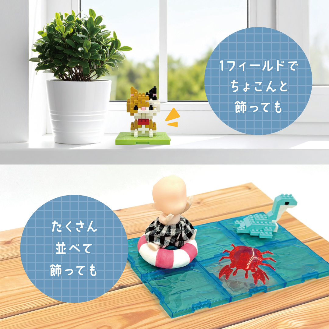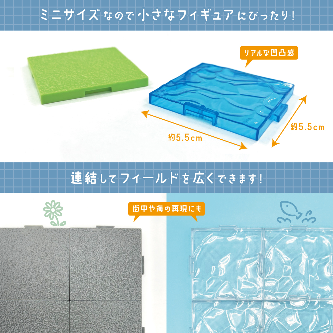 【ミニフィギュア用に】「ミニサイズフィールド 地面/水面」100円ショップで発売中