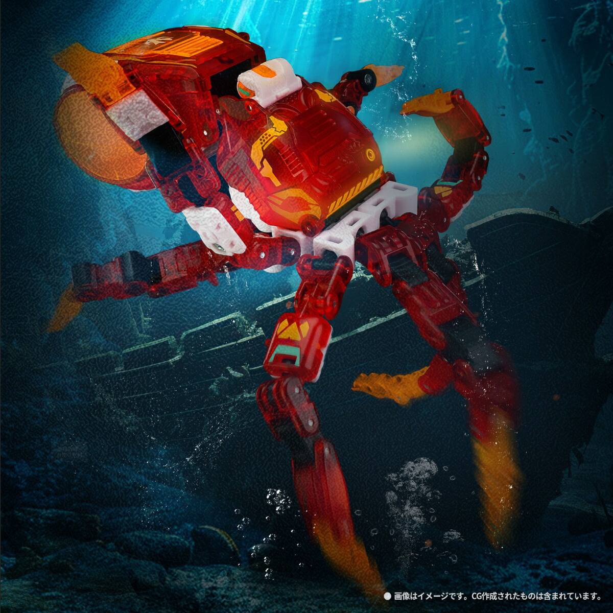 赤い透明パーツが妖艶!5cm角のキューブから超可動タコへ大変形!