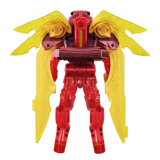 本体カラーは印象的な赤をベースに金色塗装を豪華に彩色。特徴的な翼パーツが背面に追加されています。またテガソードのセリフ、変形音、変身音など、新規音声もふんだんに収録しています。