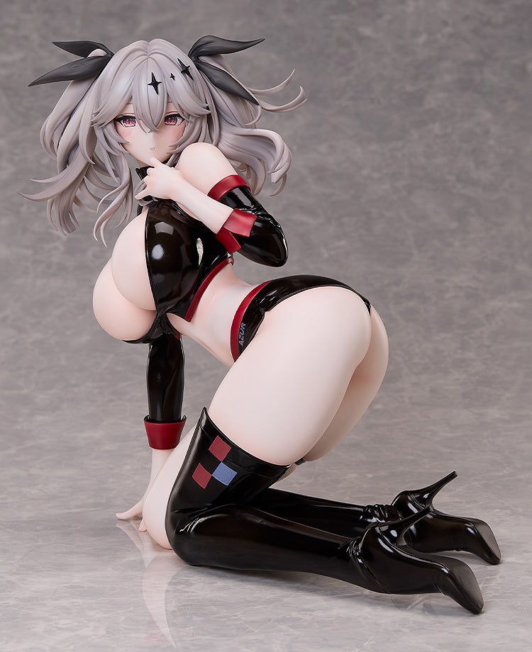 スマートフォン向けアプリ『アズールレーン』より、ヴィシア陣営の空母「ジョッフル」の着せ替え衣装「祝福のスタートダッシュ」が1/4スケールで登場です。ボンネットに乗り、フロントガラス越しに指揮官に迫るLive2Dアニメのジョッフルを迫力満点に立体化。胸が誇張され体をギュッと押し込めたようなタイトなレースクイーン衣装を再現しました。既に予約受付中のストラスブールと合わせて指揮官のピットにお迎えください!