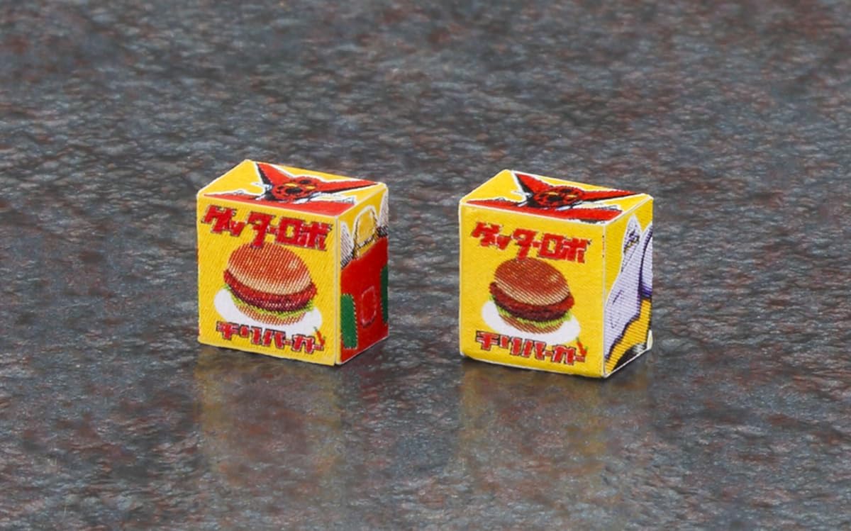 「ゲッターロボ」のイラストやロゴマークを配したオリジナルデザインの「ハンバーガー」自動販売機をキット化。