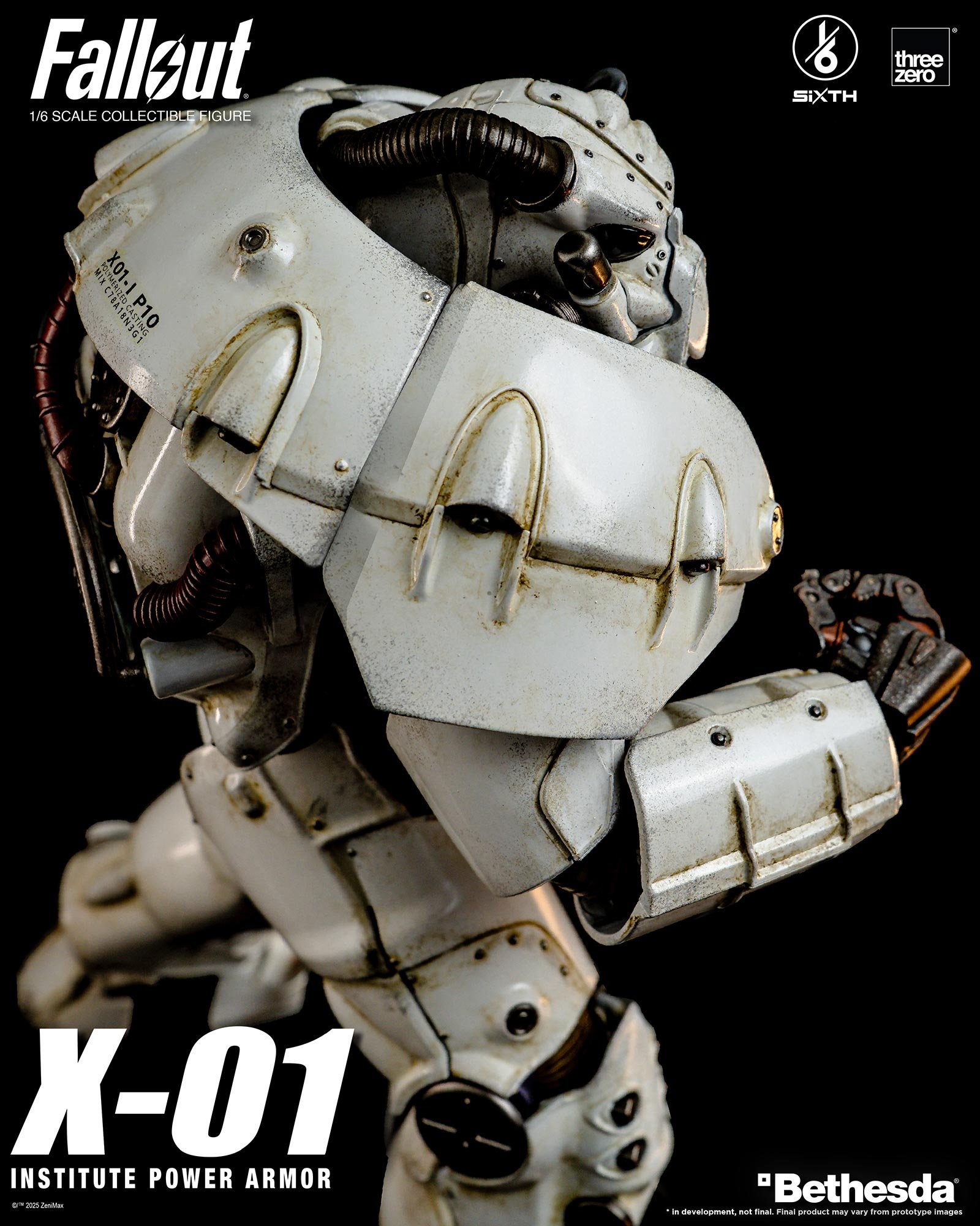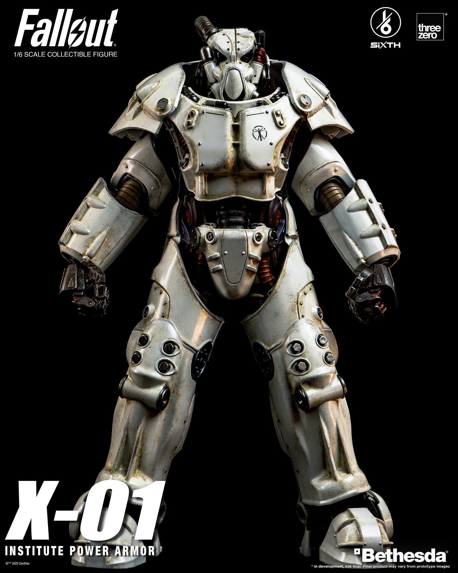 大人気ゲームシリーズ「フォールアウト」より、X-01 パワーアーマーが「インスティチュート」バージョンで登場!セラミックホワイトのアーマーにはインスティチュートのエンブレムがマーキングされており、threezeroが得意とするウェザリング塗装によってポスト・アポカリプスな世界観をリアルに再現しています。