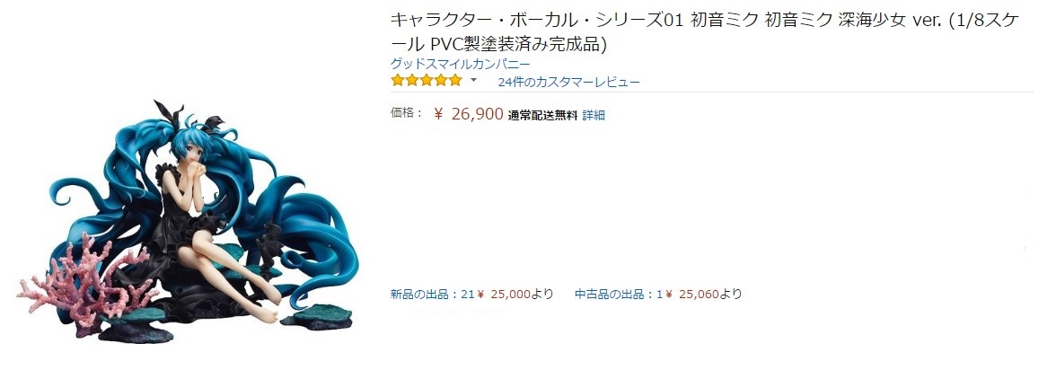 グッスマ「初音ミク 深海少女 ver.」フィギュア 再販決定 2016年12月02日 12:44 美少女再販ボーカロイドグッスマ初音ミクスケール|CM() 再販決定 ■再販決定 近日予約開始? 価格14,815円+税 2017年9月発売予定 宮沢模型展示会で発表(業者向け内覧会) キャラクター・ボーカル・シリーズ01 初音ミク 初音ミク 深海少女 ver. (Amazon) 初回価格 15,223円(税込) 2014年05月初回発売 原型制作 石長櫻子(植物少女園)ニコニコ動画でミリオン再生されている ゆうゆPの人気楽曲「深海少女」より、「初音ミク」を1/8スケールで立体化。 ミリオン再生&EXIT TUNES PRESENTS vocalodream収録記念に描きおろされた、 はるよ氏の美しいイラストをもとにフィギュアにアレンジして再現しました。 深海の底で祈るミクの透き通るような肌に漆黒のドレス、美しくたゆたう髪やサンゴ礁など 「深海少女」の世界観をお楽しみください。『深海少女』 楽曲:ゆうゆ イラスト:ODESSA(はるよ&マクー) マケプレ相場