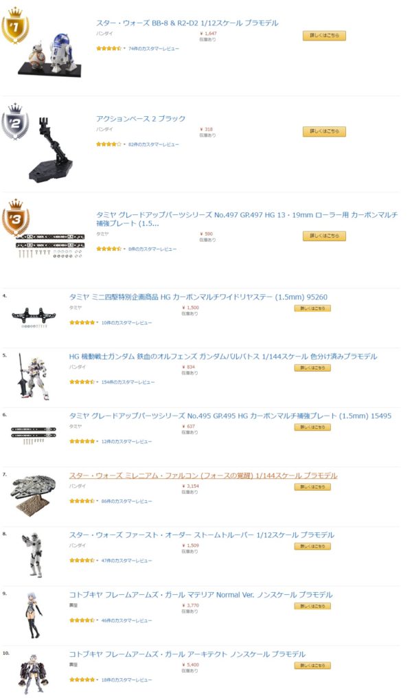 プラモデルのAmazonランキング大賞2016
