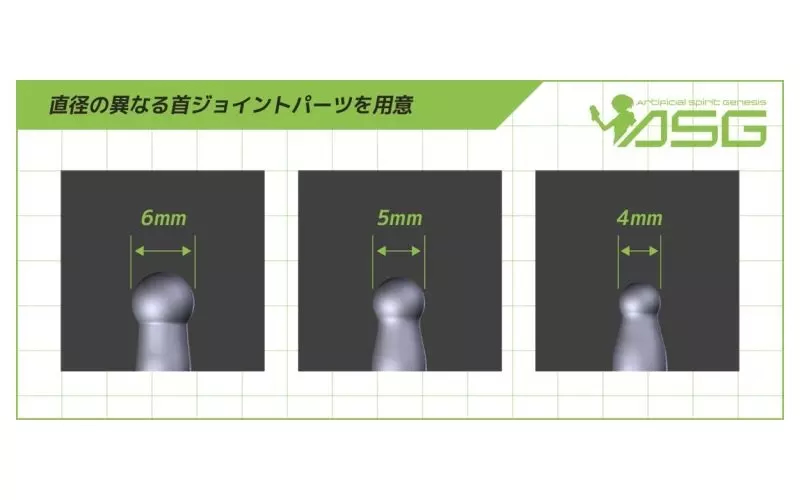 ・直径の異なる首ジョイントパーツを用意