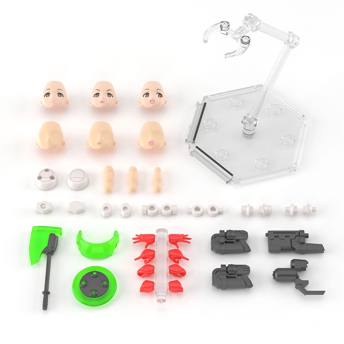 〇武器パーツ付属:「アリア」ハンドガン、ホルスター、斧、盾、他