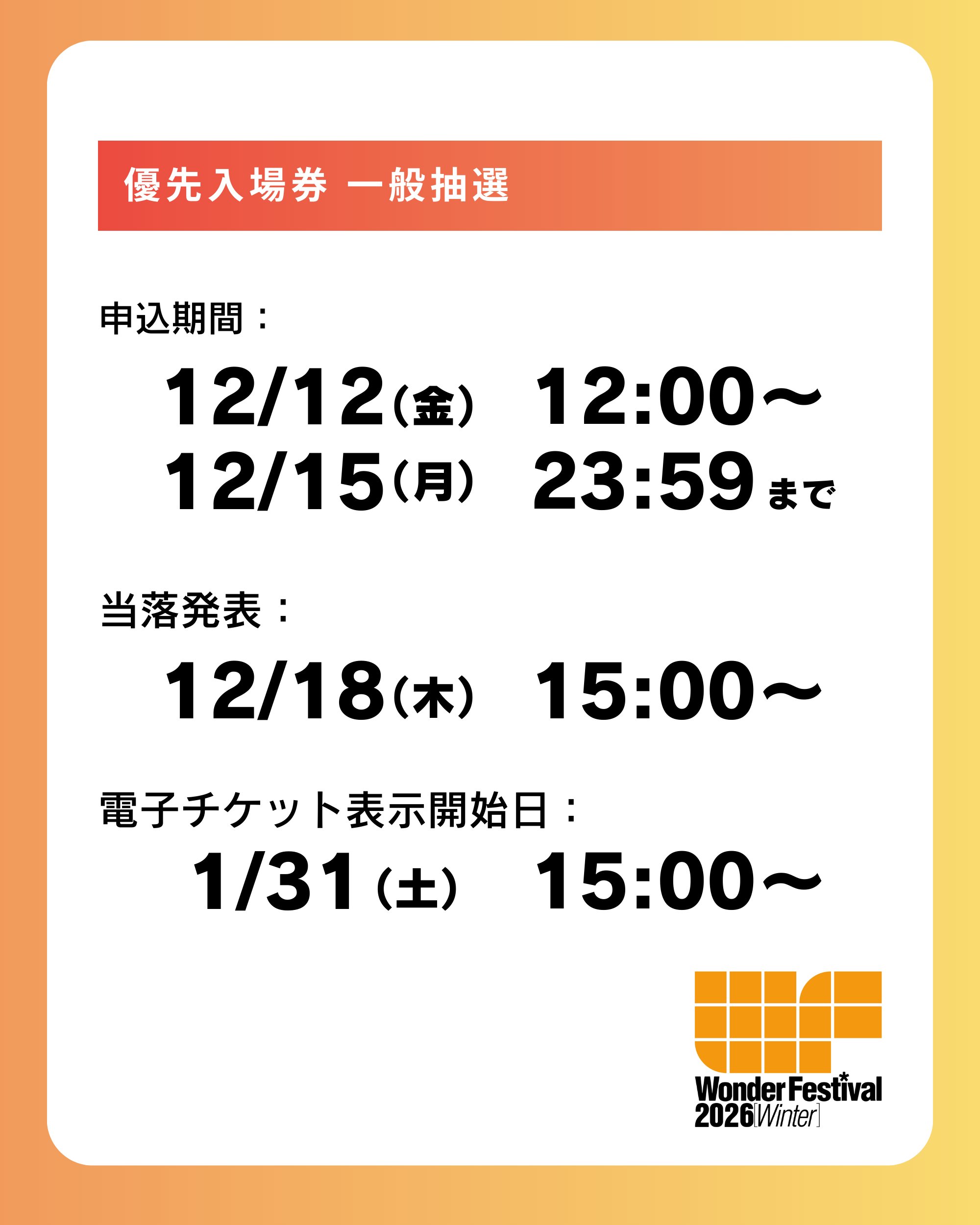 【イベント】「ワンフェス2026冬」【優先入場券 当落発表】