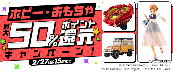 ■DMM「ホビーおもちゃ最大ポイント50%還元キャンペーン」本日開催