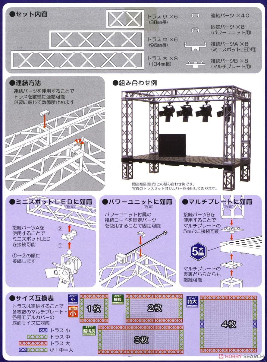 ・モデルカバー各種(小・HIGH小・横長・特大・超横長)の底面ベース規格に合わせてあり、モデルカバー内にトラスを組み上げることが可能。