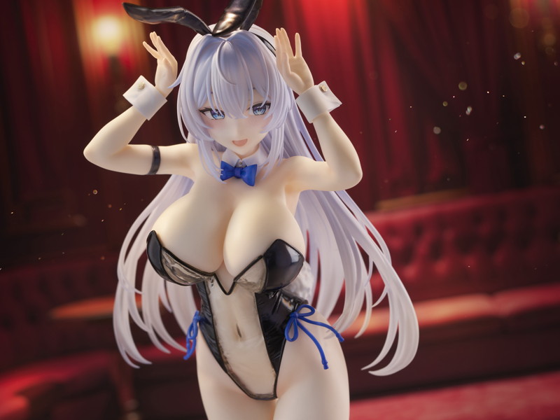 ポージングは、両手でバニーイヤーを持ち上げる愛らしい仕草を採用。柔らかな表情と相まって、可憐さと大胆さを兼ね備えた印象的な仕上がりとなっています。網タイツやハイヒール、リボンなどの小物も丁寧に作り込まれ、細部まで抜かりのない完成度を実現しました。