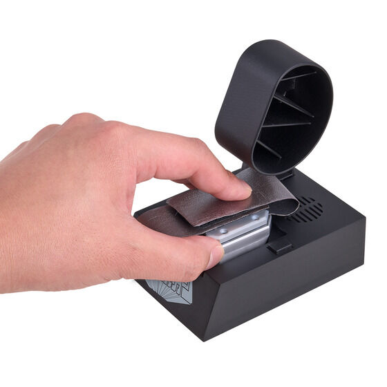 劇中のサイズ感を再現するため、バルカンブレス本体には電池を使用しない機構を実現。代わりに電池を搭載した専用台座からの給電ギミックを採用しており、ブレス本体への電池搭載無しで変身音声の発動やLEDの発光が可能となっています。ブレス本体にはモーションセンサーを搭載しており、劇中の変身アクションによって変身音が発動、劇中同様にブレス上下のLEDが発光します。またボタン押下により印象的な各種効果音が発動可能です。さらに名乗り開始前の各キャラクター効果音も収録しています。
