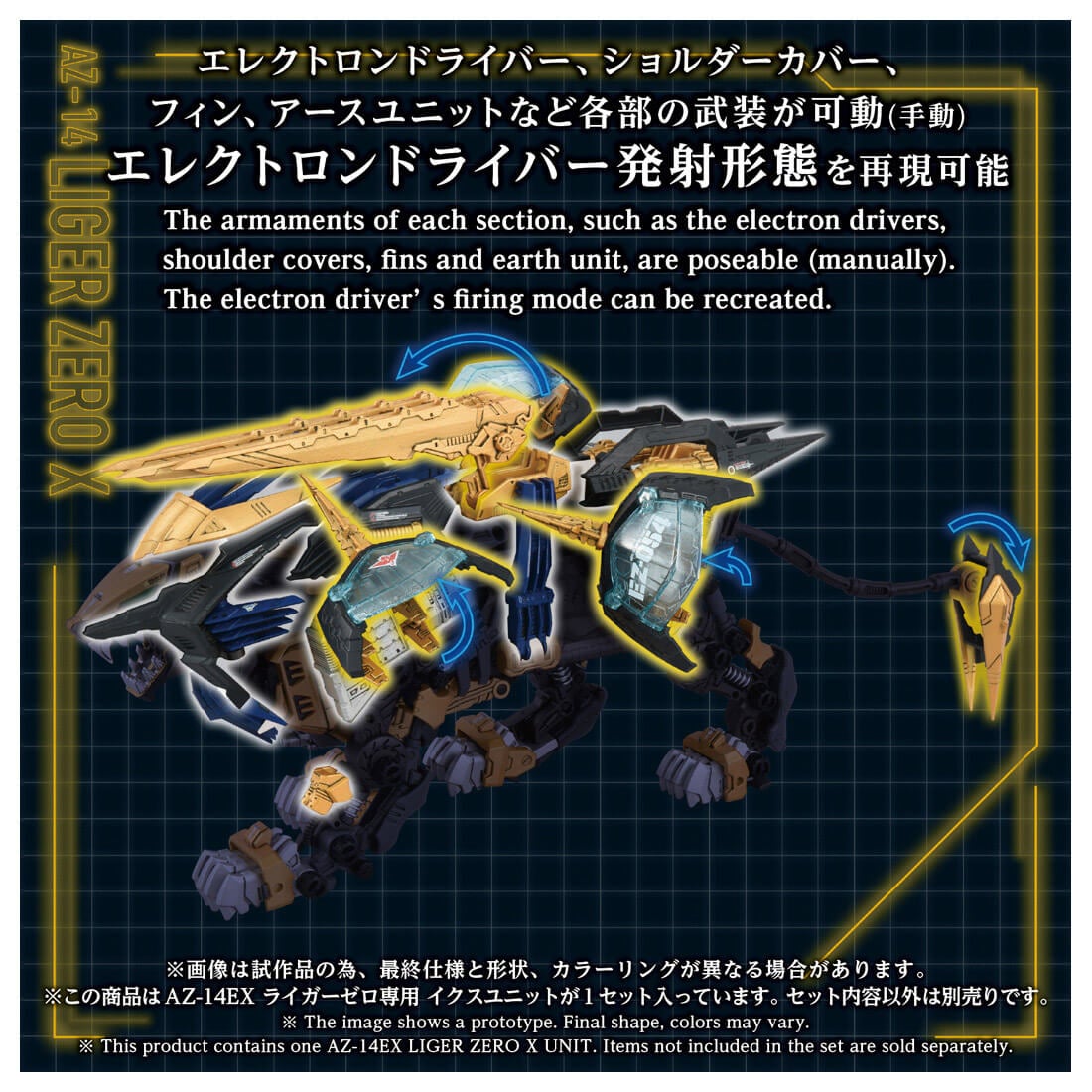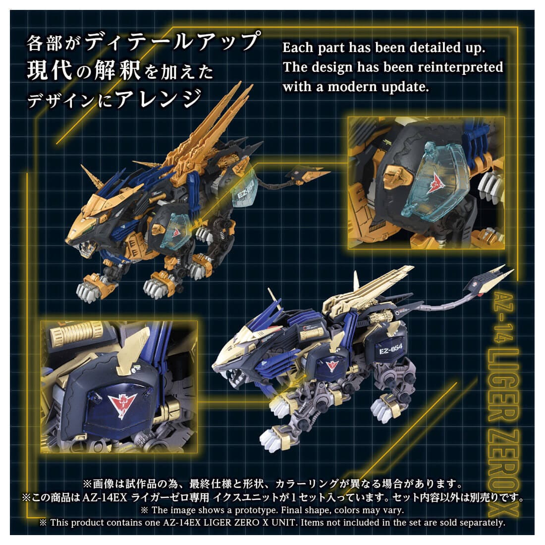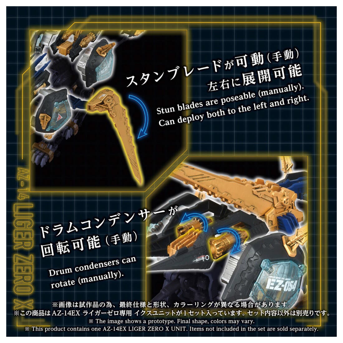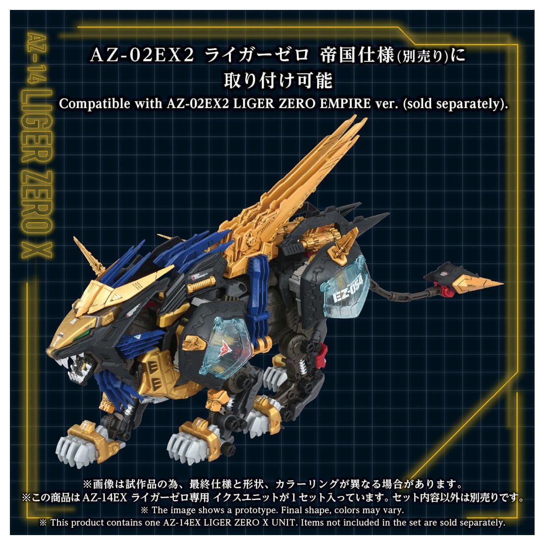 「AZ-02EX2ライガーゼロ帝国仕様」(別売)や「AZ-02ライガーゼロ」(別売)などのAZシリーズライガーゼロ(素体)と組み合わせることで「ライガーゼロイクス」を再現できるユニット(パーツ)のみの商品です。