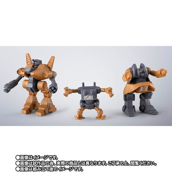 実験映像「戦闘メカザブングル SIDE R」に登場した新規武装を装備した、「ザブングル」「ウォーカーギャリア」「にせザブングル」を新規造成かつ彩色済みで立体化。新規造形の「ブラッカリィ」も組み立て式でラインナップ。