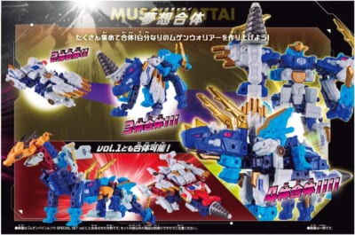 1体でも沢山の変形パターンを楽しむことができ、複数体での合体も可能です。