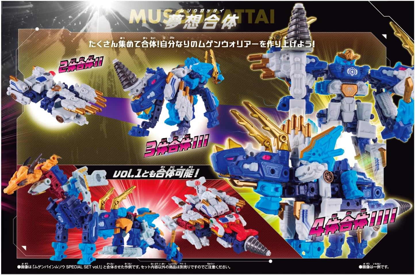ムゲンタイガ、ムゲンチェイサー、ムゲンドリル、ムゲントータスの限定カラー4種が入っているセット商品です。