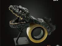 映画「シン・ゴジラ」より、使用するたびにゴジラの熱線を再現できる梱包テープカッターが登場!「シン・ゴジラ」に登場するゴジラ第4形態の迫力ある造形、マグマのような体表の塗装などを梱包テープカッターとしてリアルに再現。印象的な不揃いな乱杭歯や瞳孔の小さな目もリアルに造形されています。下顎、背びれが着脱でき、梱包テープカッターとしての使いやすさも考えてデザインされています。OPPテープ、布テープ、クラフトテープ等、幅50mmまでの一般的な梱包用テープに使用頂けます。