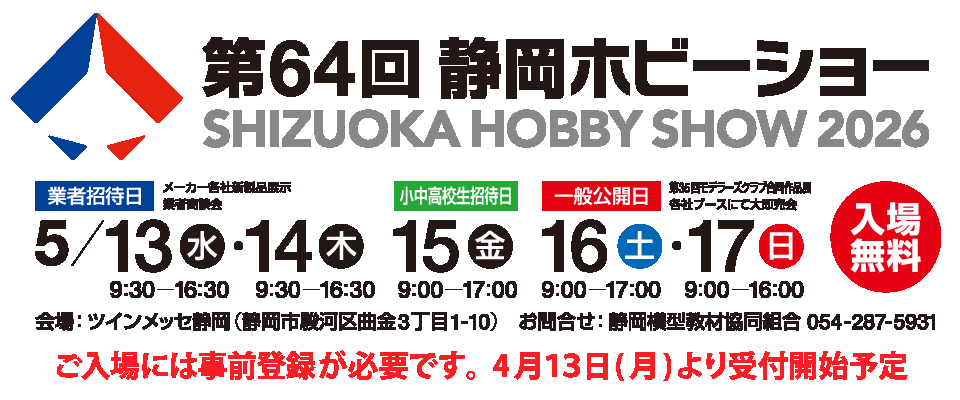 【イベント】「第63回 静岡ホビーショー」5月開催、事前登録受付 本日開始