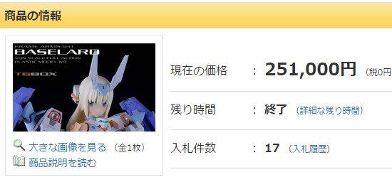 【小ネタ】FA:G「バーゼラルド 塗装済改修完成品」25万円で落札 ほか