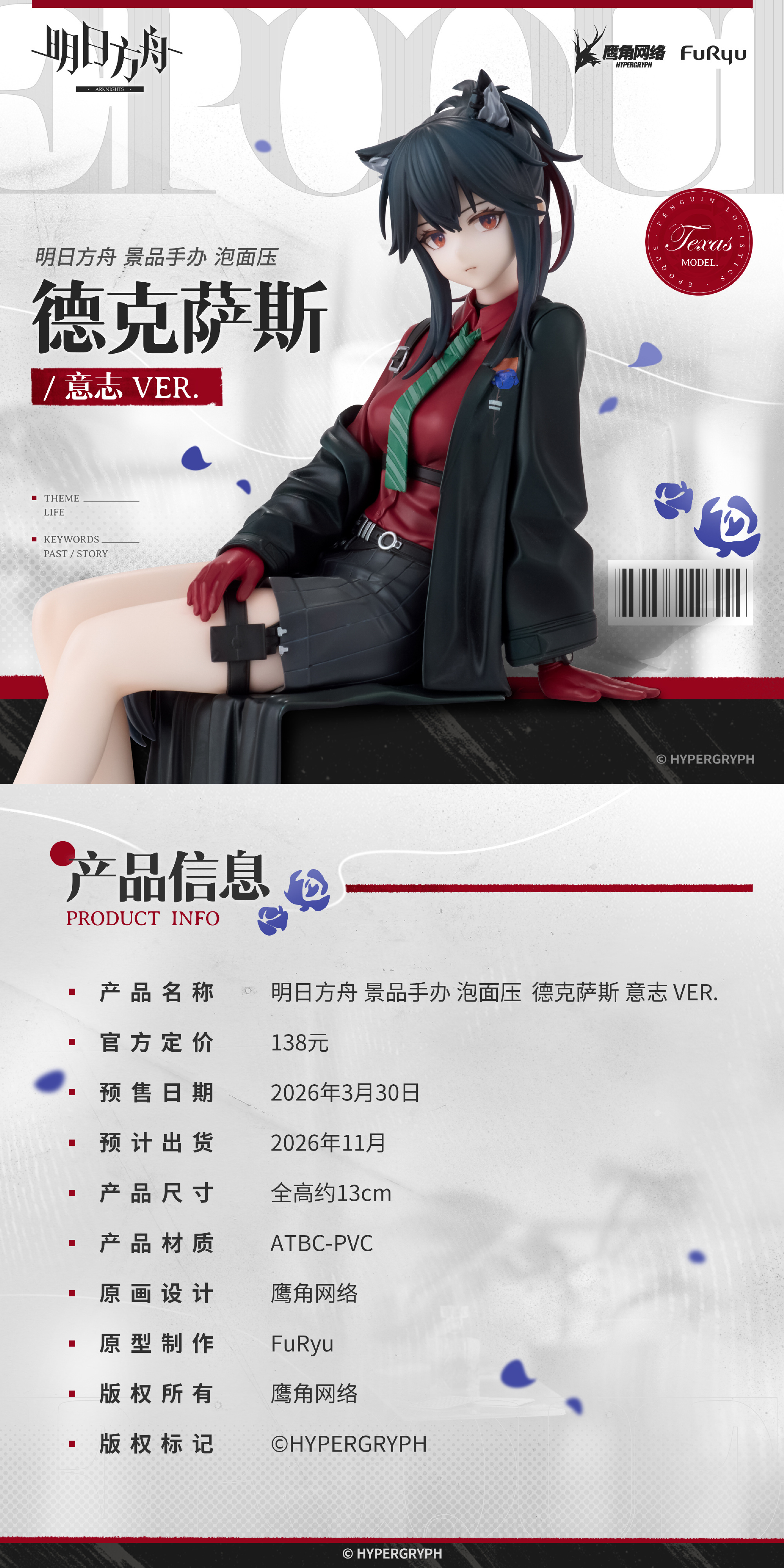 【アークナイツ】ぬーどるストッパーフィギュア「テキサス 意志ver.」フィギュア【彩色原型公開】