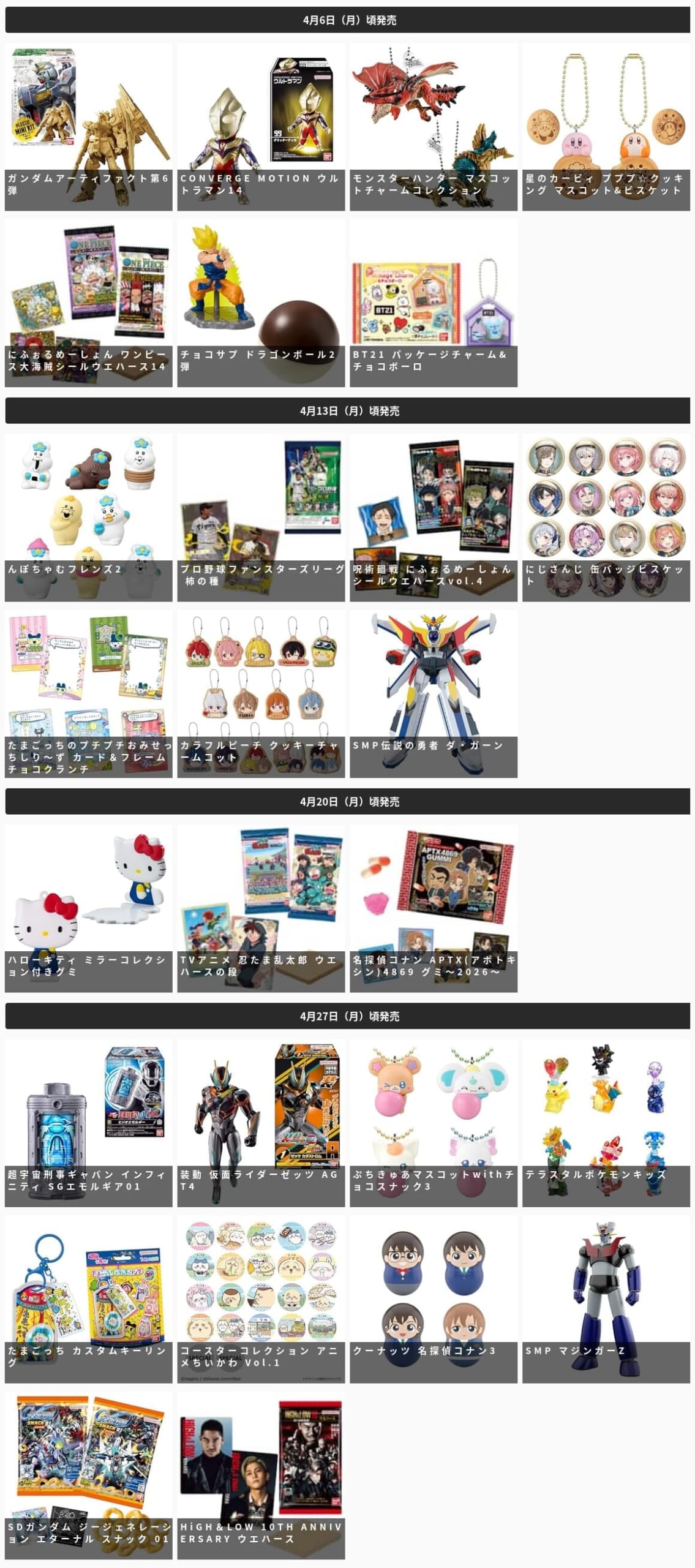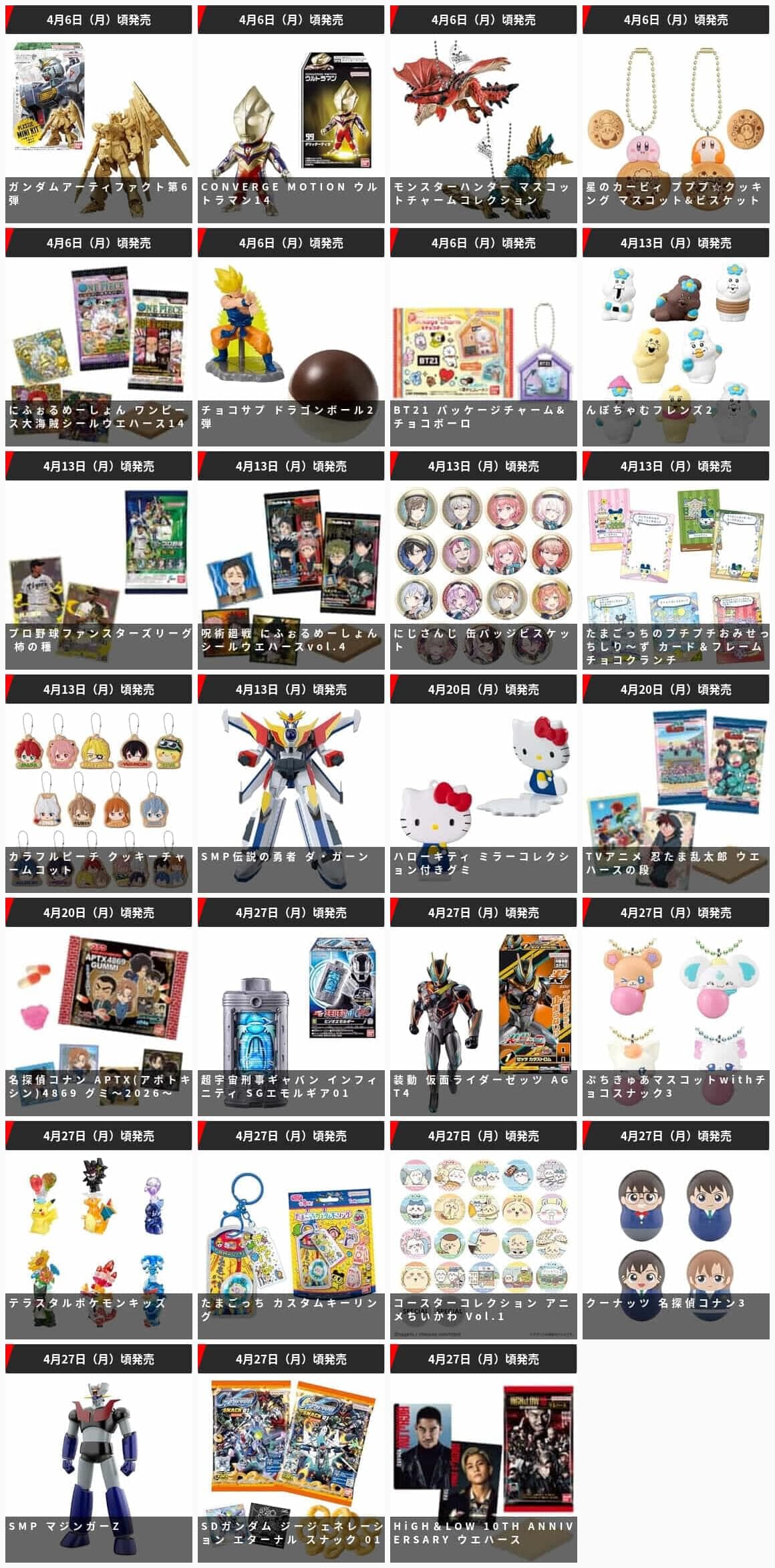 【バンダイ】「食玩」「プライズ」「ガシャポン」2026年4月発売商品【発売スケジュール】