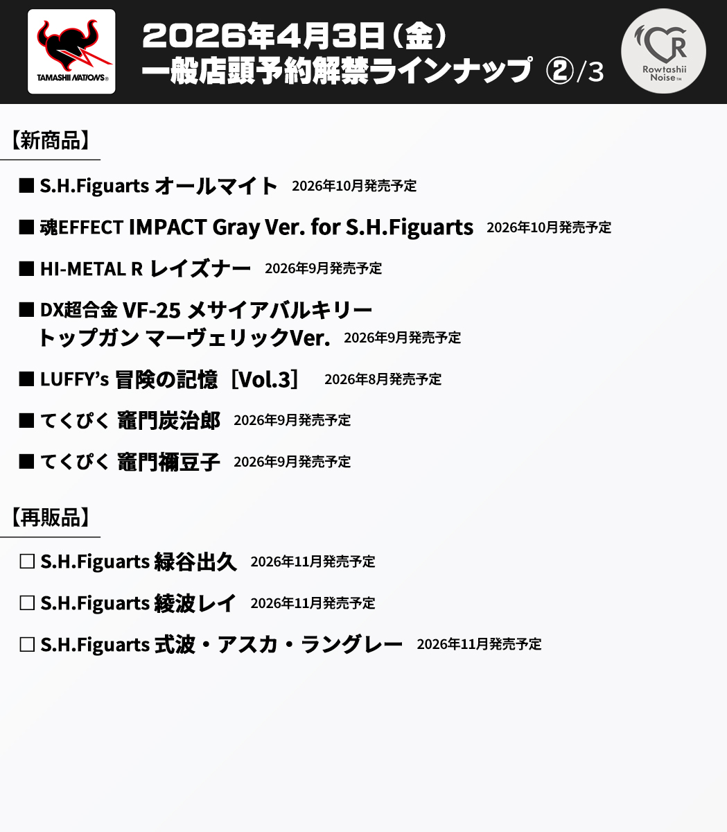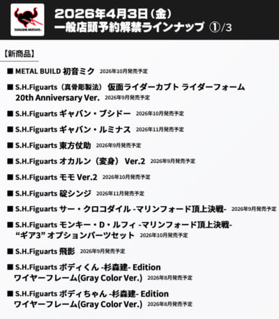 ■魂ネイションズ「2026年8~12月・2027年2月 新商品」4月3日16時予約開始、ラインナップ公開