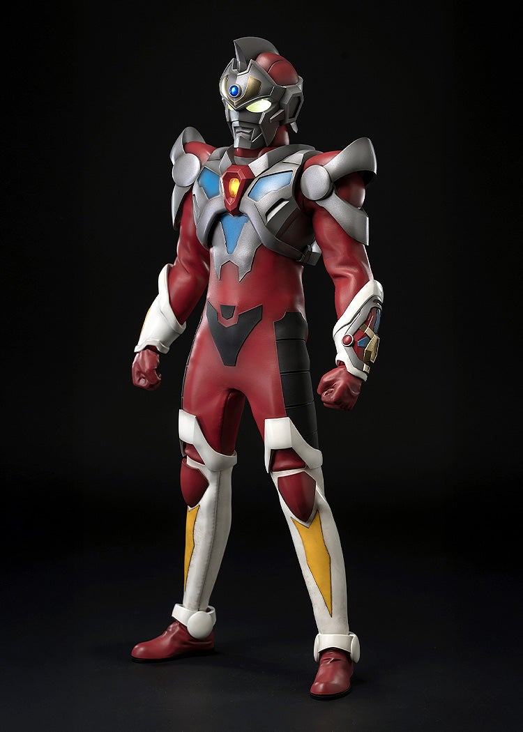衣装は布及びプラスチック製で、布素材の表面に特殊なコーティングを施すことでTVシリーズ劇中の質感を精密再現。ハイディテールな造形にウェザリング表現を含む精密な塗装が施されています。また両目および胸部にはLEDによる発光機能を搭載。