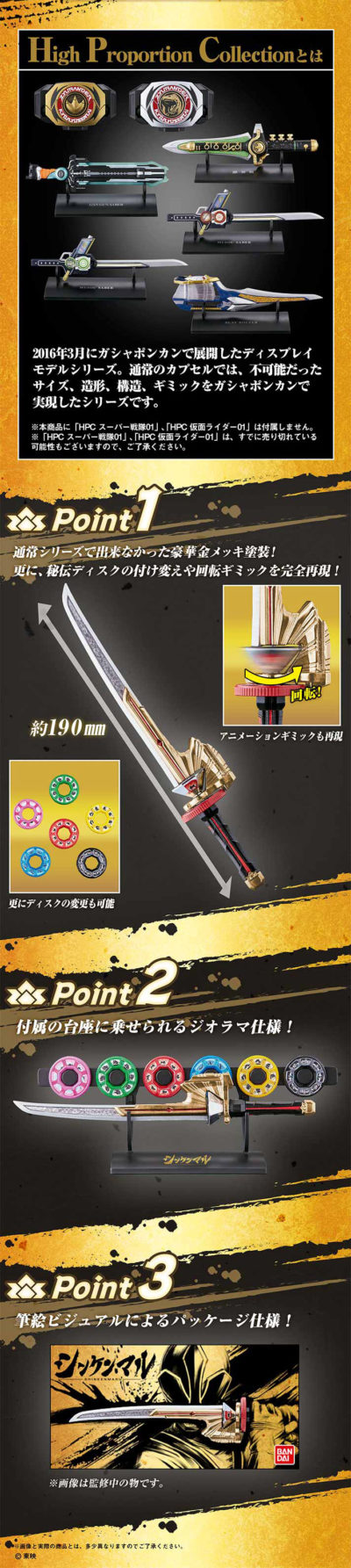 【侍戦隊シンケンジャー】「シンケンマル High Proportion Collection Ex series」明日受注締切 2017年03月26日 10:45 特撮/怪獣プレバンカプセル侍戦隊シンケンジャー|CM() 明日まで ■プレバン限定で受注開始 侍戦隊シンケンジャー シンケンマル High Proportion Collection Ex series (プレバン) 価格 3,240円(税込) 2017年06月発売予定 メーカー バンダイ High Proportion Collection Exseriesから 早くも戦隊第二弾が登場! 通常シリーズでは再現出来なかった金色メッキ塗装を採用し、 サイズ感も約15cmから約19cmとボリュームもアップ。 第二弾は侍戦隊 シンケンジャーより「シンケンマル」をラインナップ 台座が付属しておりディスプレイ出来ることはもちろんのこと、 ディスクの付け替えや、アニメーションギミックも完全再現。 プレミアムバンダイならではの仕様を、お手に取って感じて下さい。