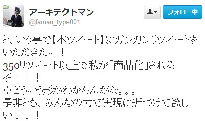 350リツイート以上で私が「商品化」されるぞ!!!