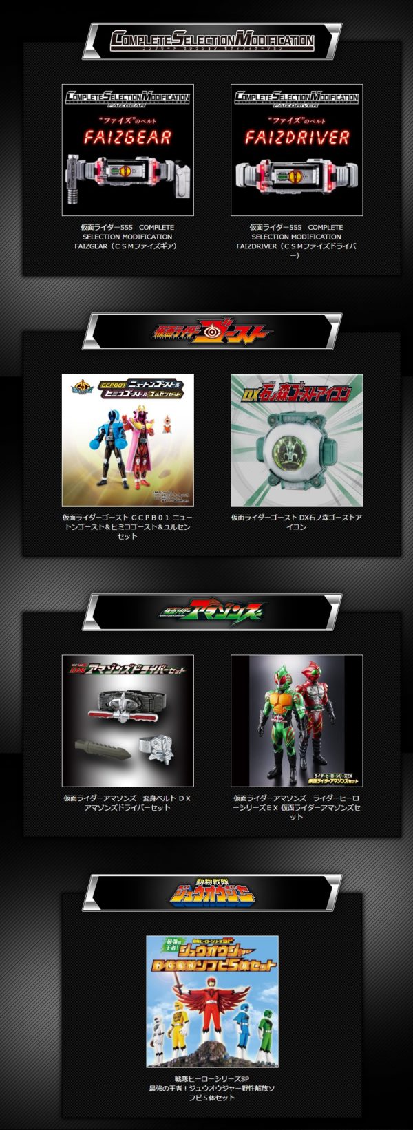 【プレバン】ボーイズトイ特別抽選販売開始「CSM ファイズギア」「DX アマゾンズドライバーセット」ほか